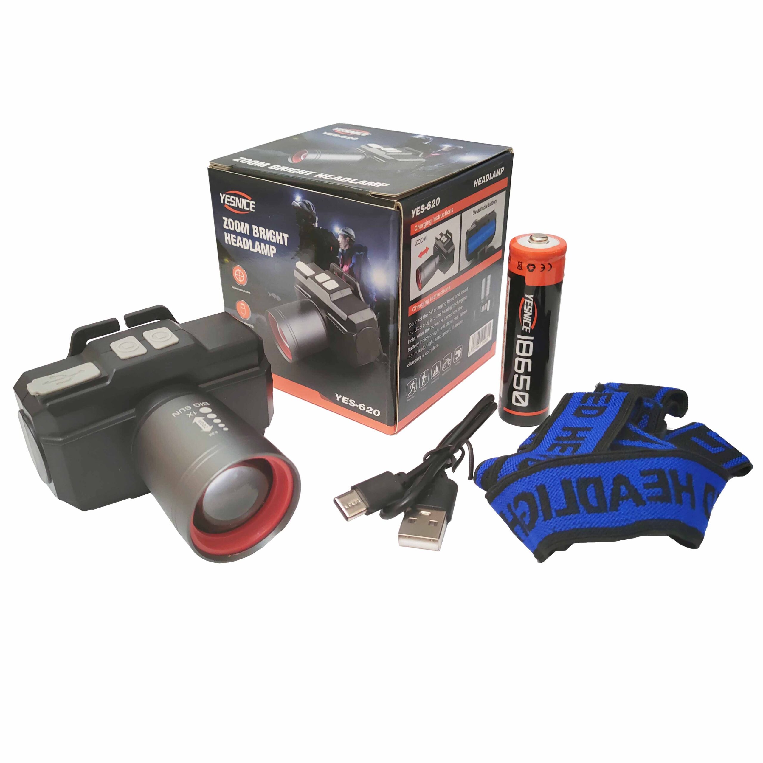 چراغ پیشانی زومدار با باتری قابل تعویض مدل YES-620